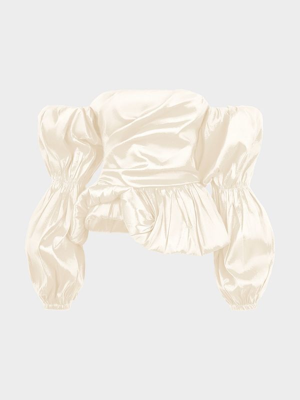 Сатиновый топ с объемными рукавами