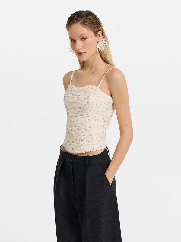 Топ с цветочным принтом и драпировкой