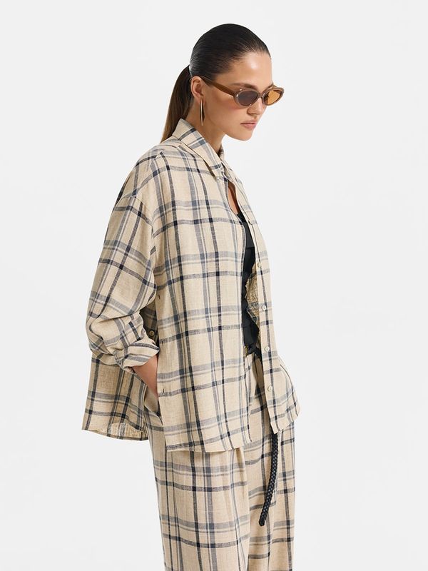 Рубашка в клетку изо льна и вискозы