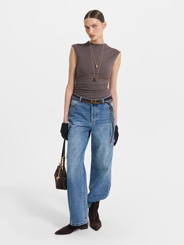 Прямые джинсы с высокой посадкой