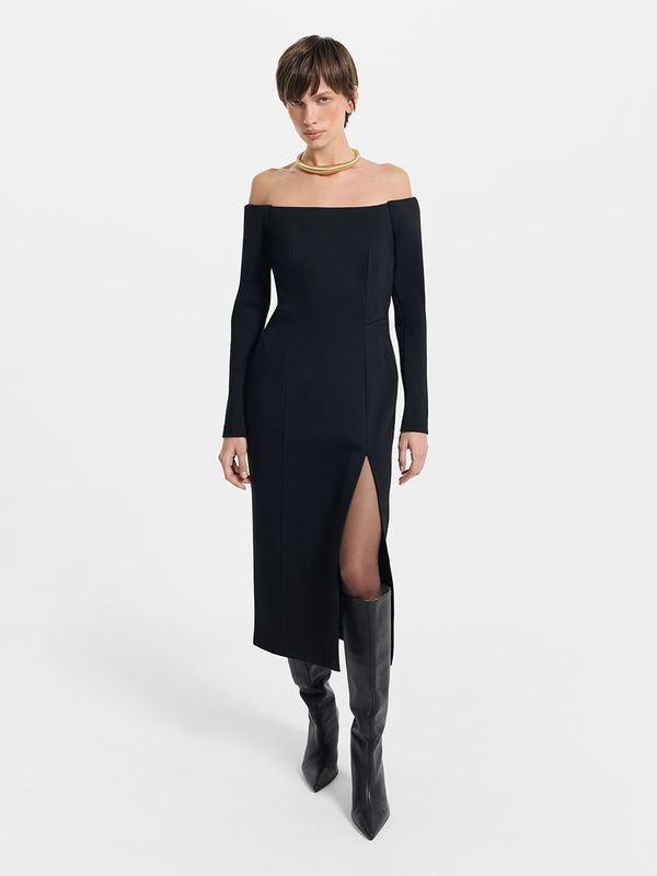 Платье миди с открытыми плечами