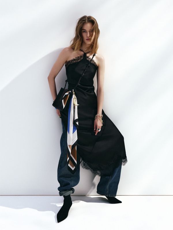 Асимметричное платье-комбинация с кружевом