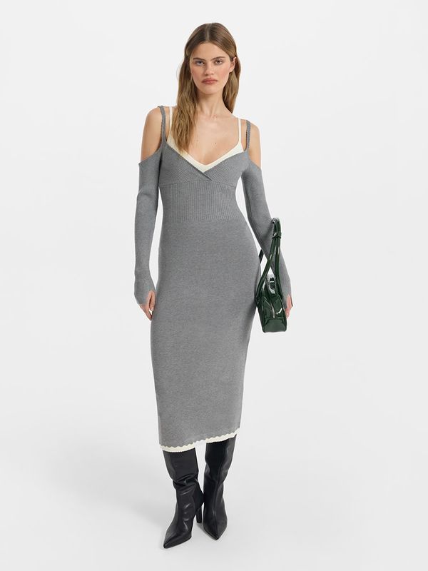 Трикотажное платье с бретелями и открытыми плечами