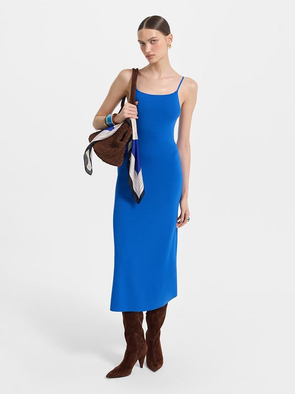 Трикотажное платье миди на бретеляхТрикотажное платье миди на бретелях