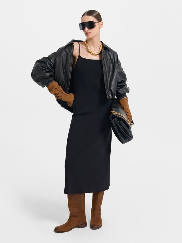 Трикотажное платье миди на бретелях