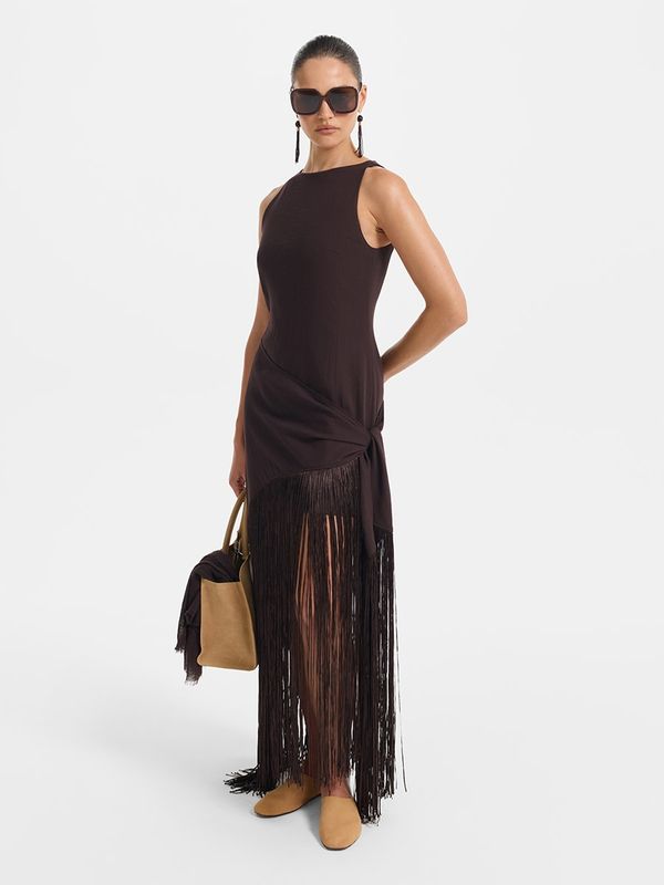 Платье из вискозы со льном с длинной бахромой