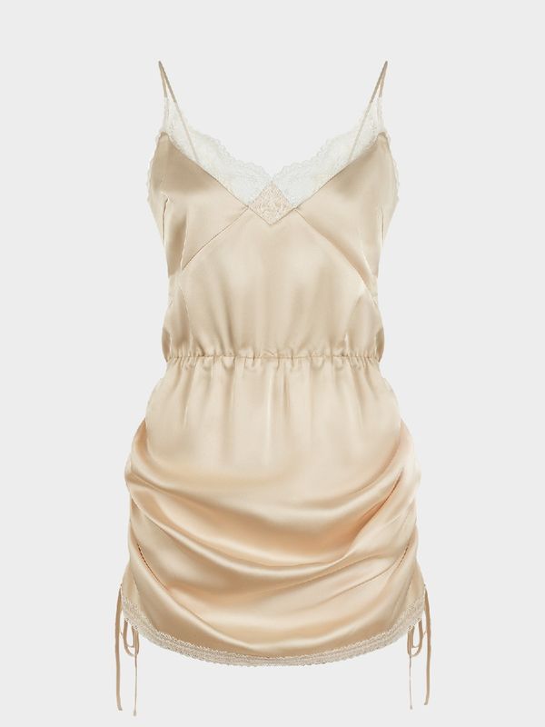 Атласное платье мини с кружевом