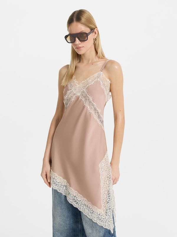 Удлиненный топ из атласа с кружевомУдлиненный топ из атласа с кружевом