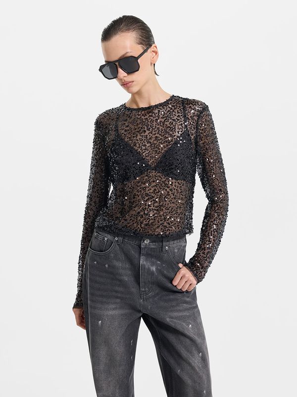 Полупрозрачный топ из сетки с пайетками