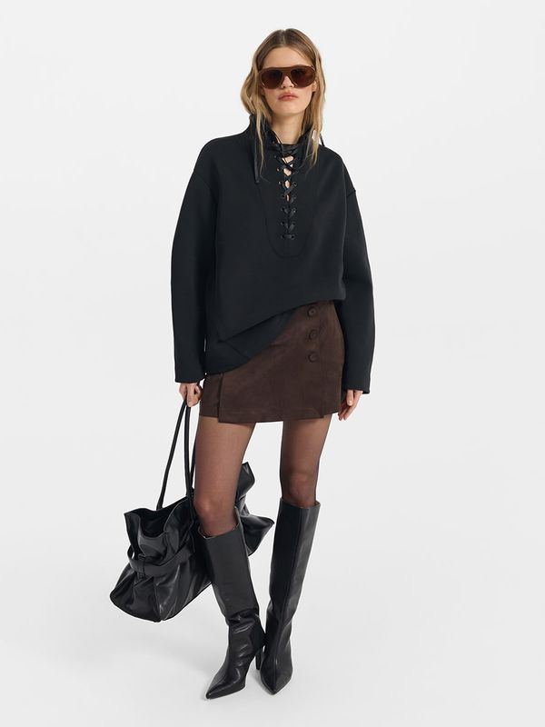- На модели размер 44. Крой модели соответствует стандартному размеру