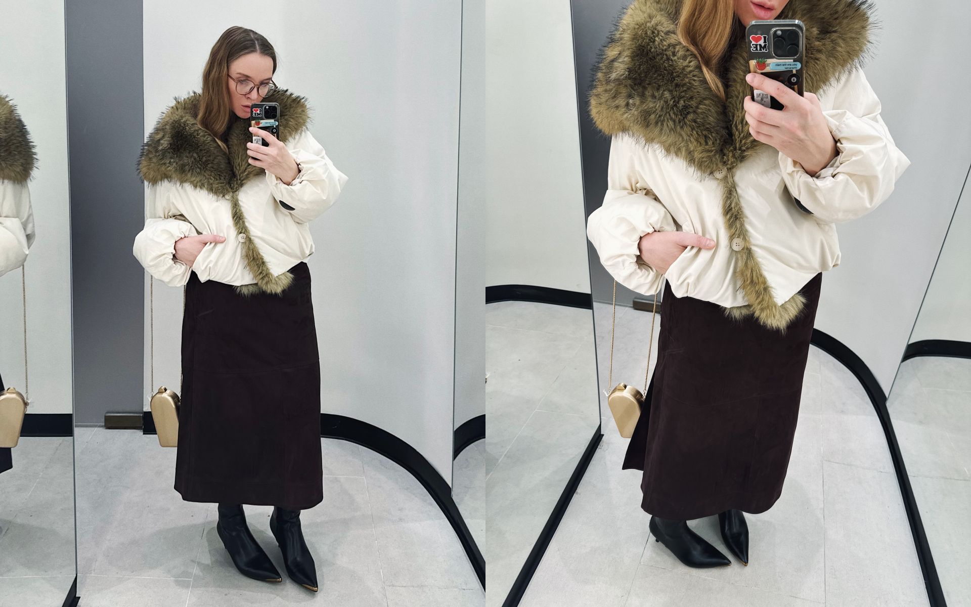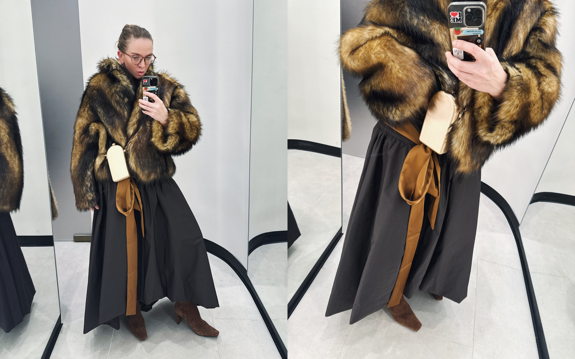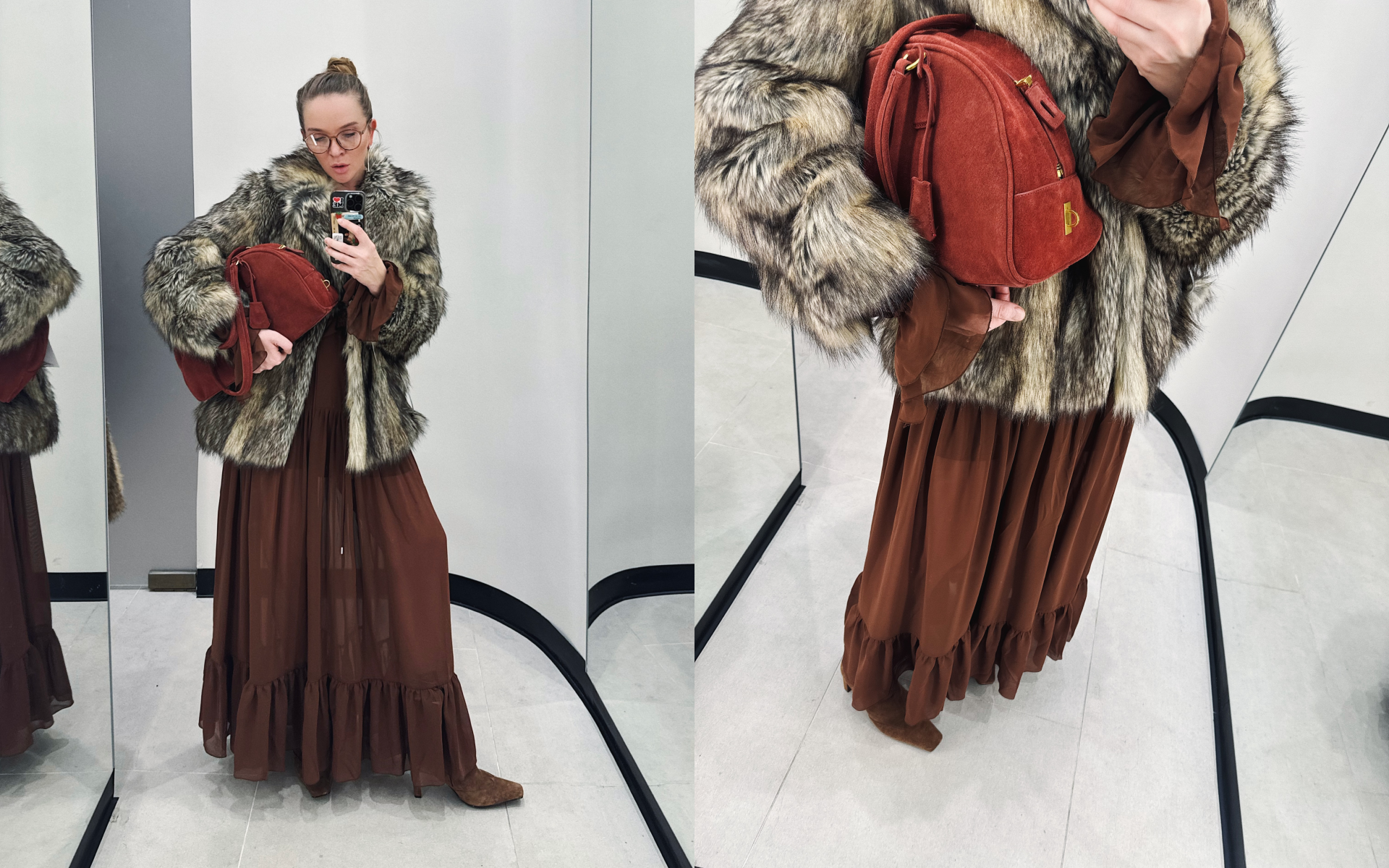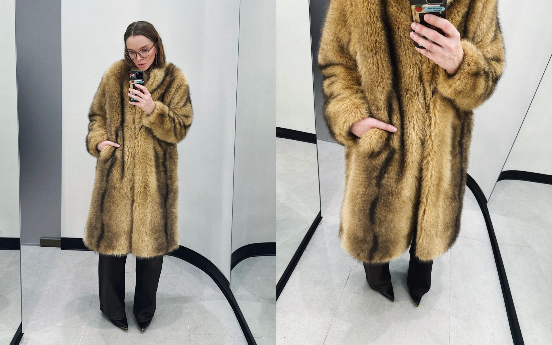 - На модели размер 44. Крой модели соответствует стандартному размеру