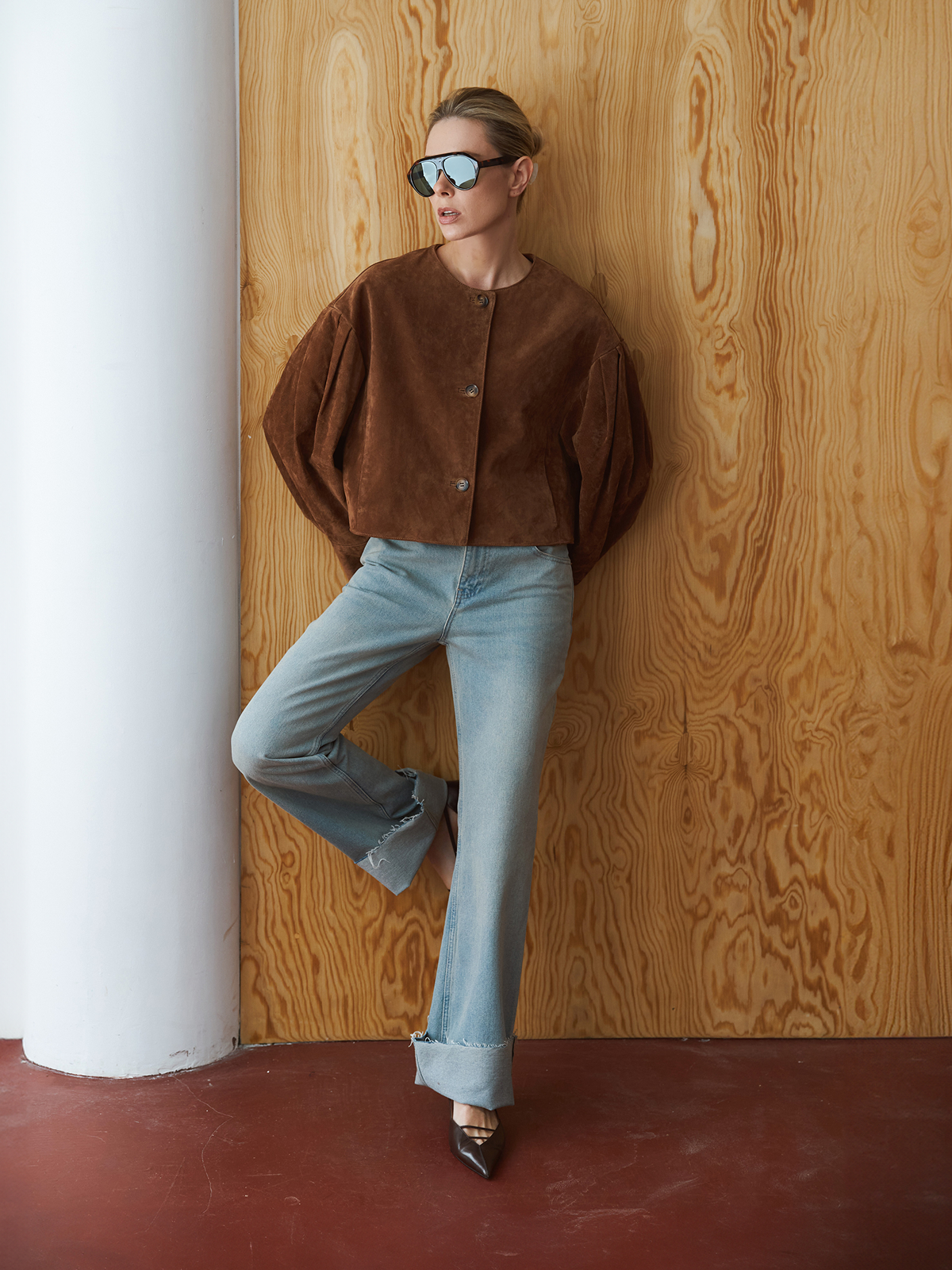 Жакет из натуральной замши с объемными рукавами
