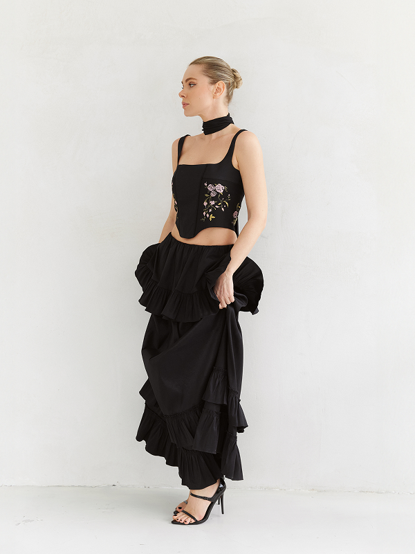 Корсетный топ с цветочной вышивкой
