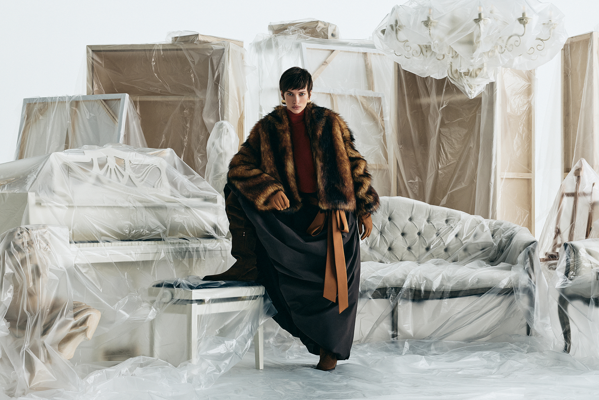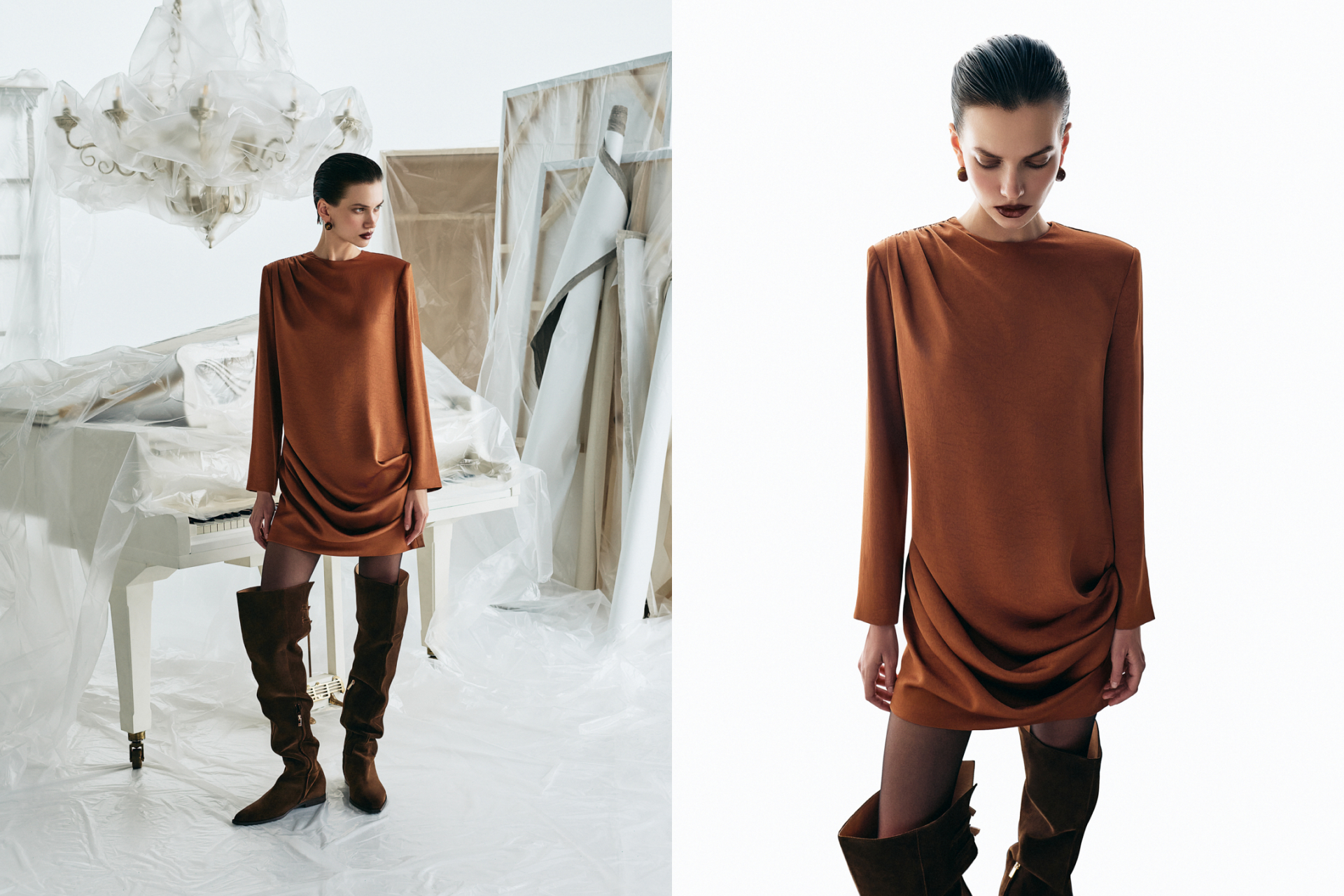 - На модели размер 44. Крой модели соответствует стандартному размеру.
